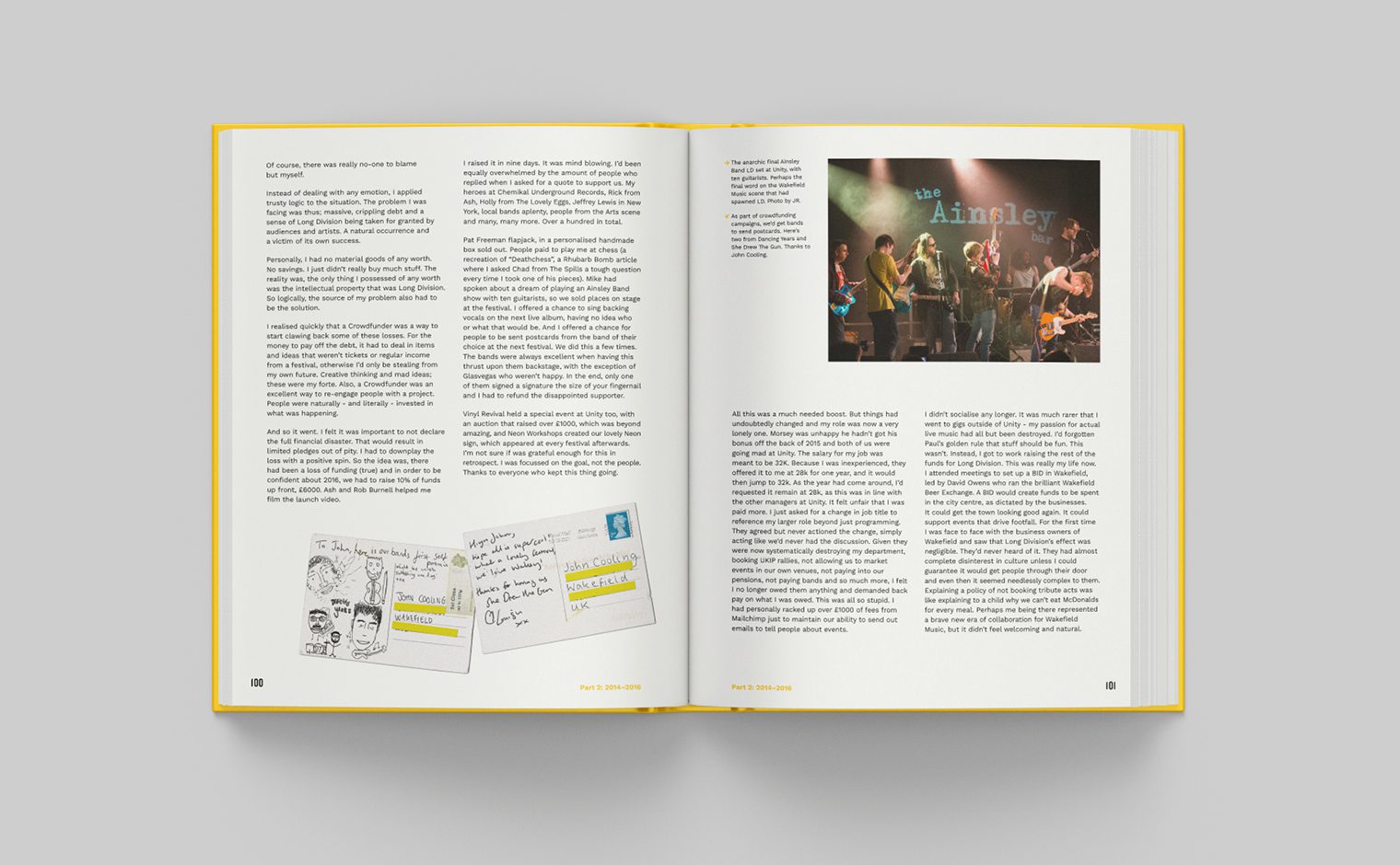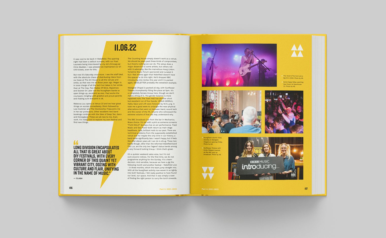 Drawing on Long Division’s vast archive alongside contributions from artists, journalists and the Wakefield community, the book blends posters, photographs, setlists, merchandise, and personal reflections. The design balances raw DIY energy with a polished finish, creating a lasting testament to working-class creativity and the power of independent culture.